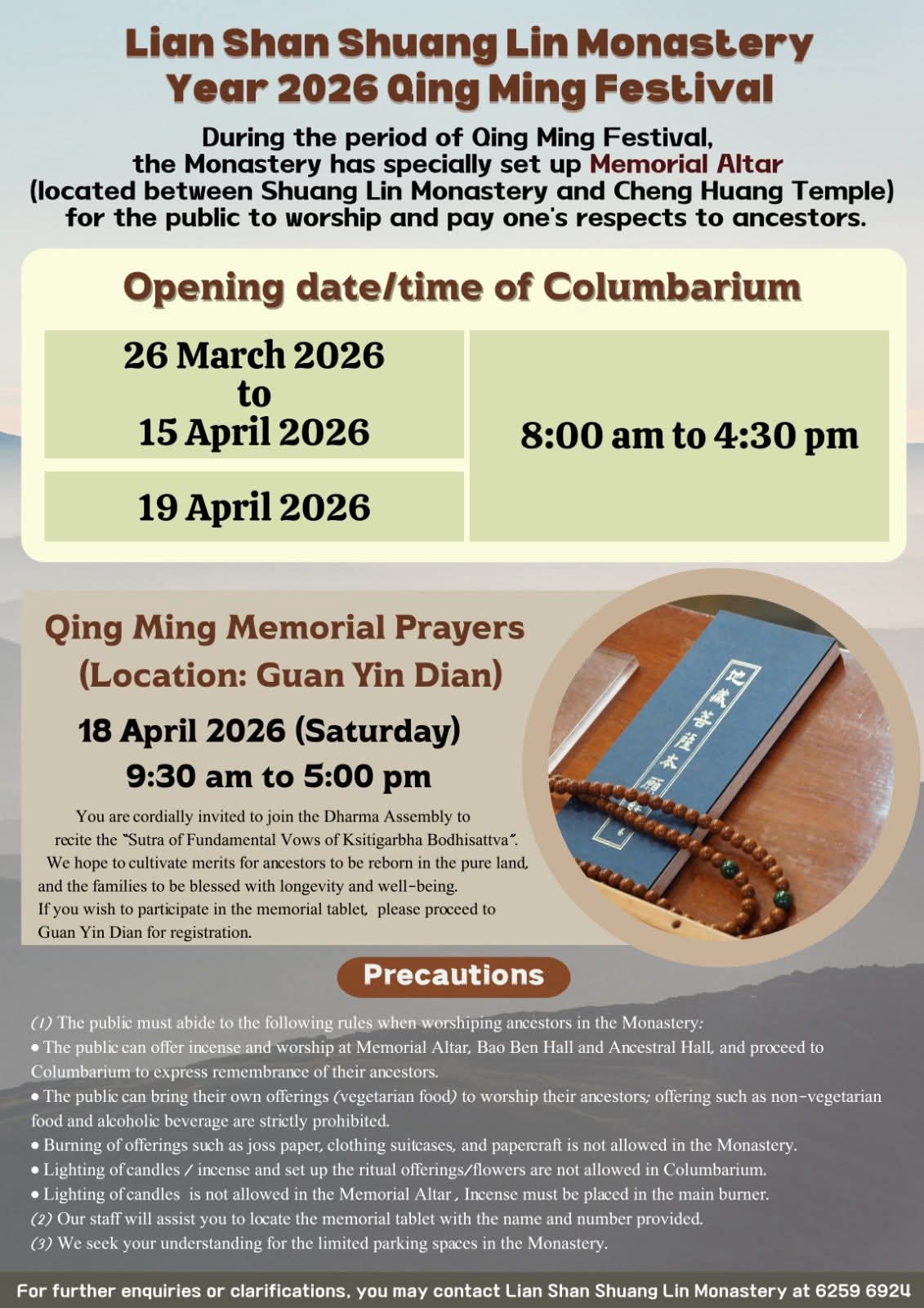辞旧迎新,农历岁次丙午(2026年)将至,本寺特备全年共修及法会日期与时间表,敬供参阅,欢迎十方护法、善信随喜参加,广结善缘,共沾法益。