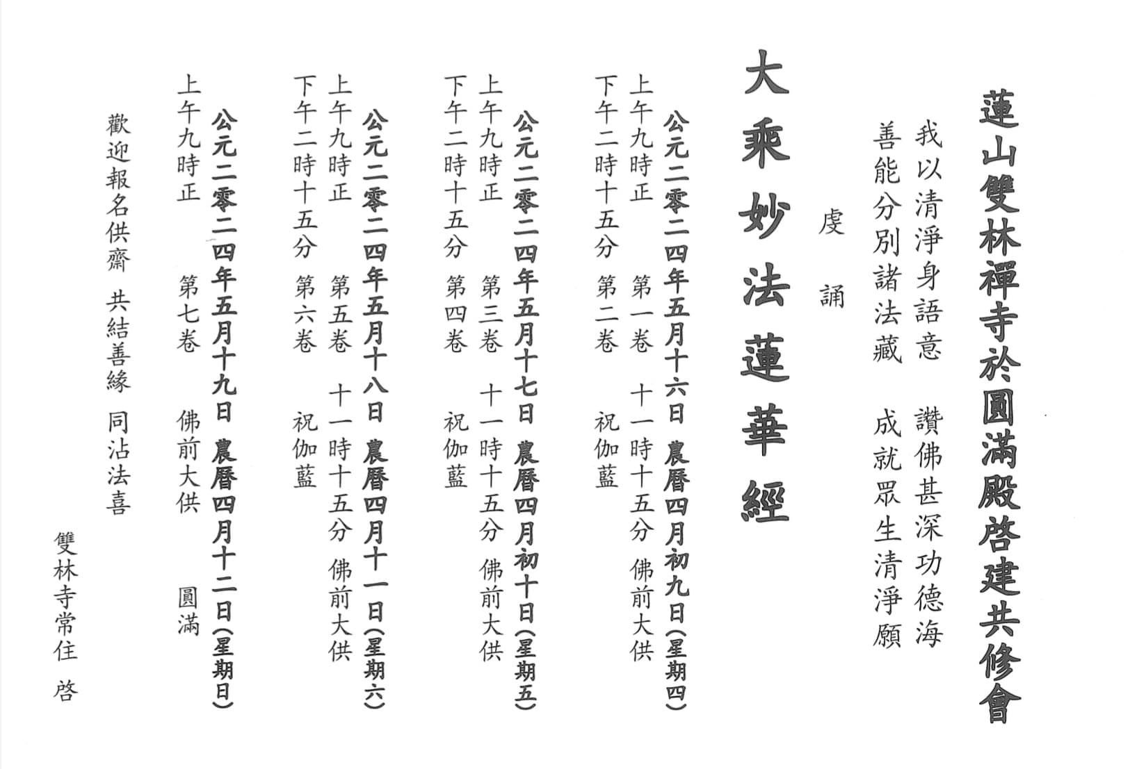 敬请护法善信随喜参与,共植福田。
