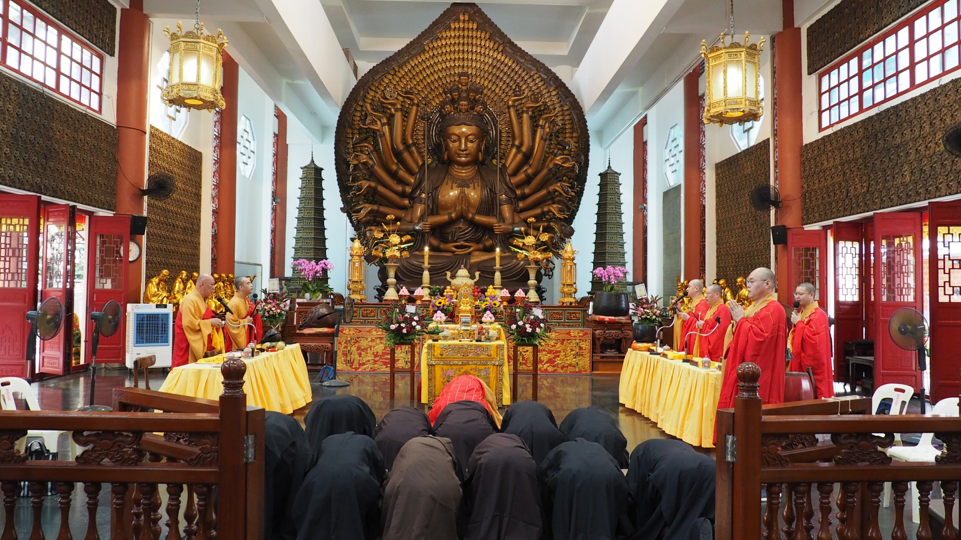 因缘殊胜,本寺谨于农历二月十九日上午10时在观音殿启建法会,由常住法师领众,率护法善信虔诚顶礼《大悲宝忏》,仰仗观世音菩萨大悲愿力,至诚祈愿: 世界和平,国泰民安; 灾障消除,众生安乐; 福慧增长,正法久住。