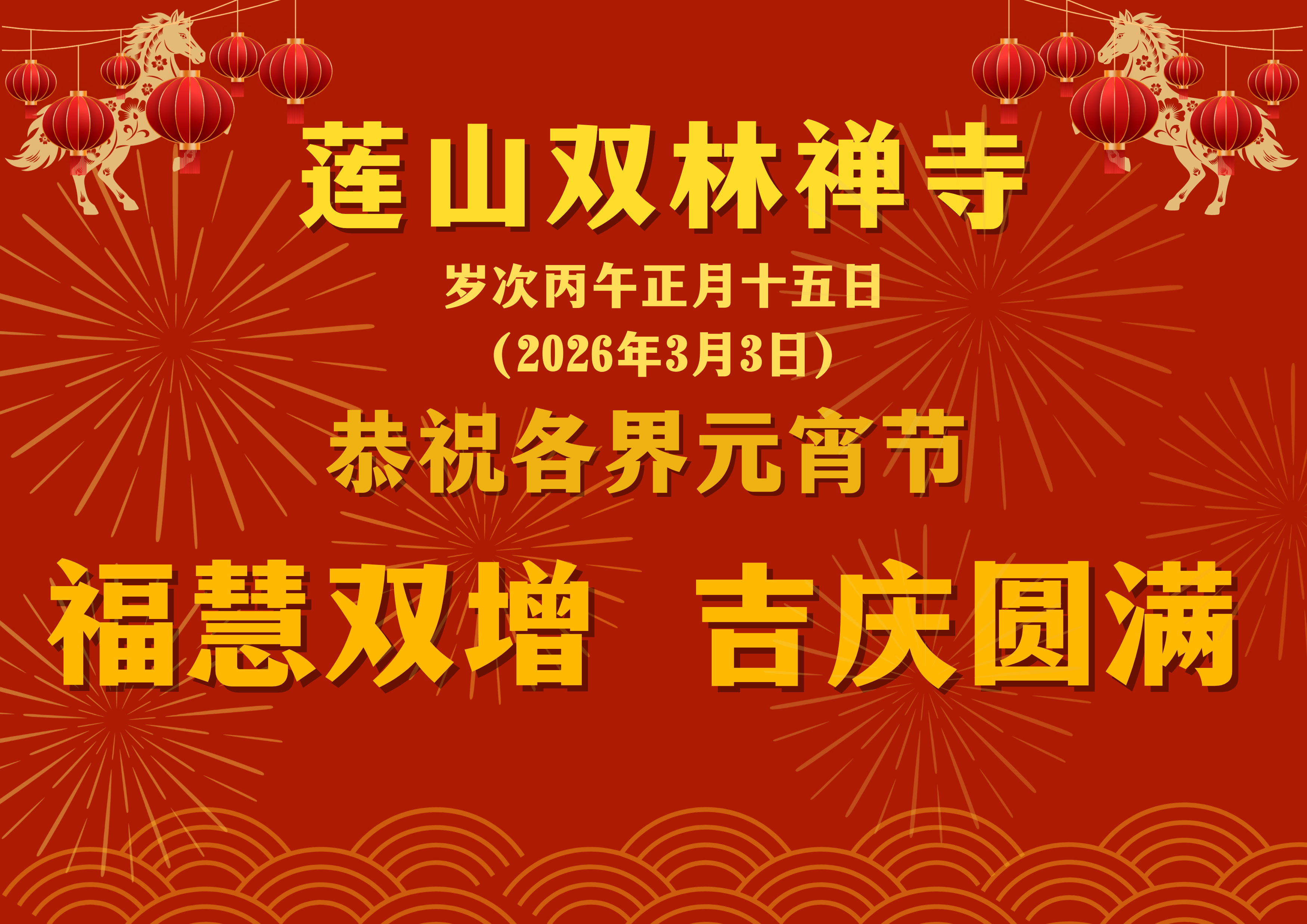 辞旧迎新,欣逢农历岁次丙午(2026年)新春佳节来临,由本寺法师为善信诵经祈福,回向功德,消灾解厄,植福培慧,祈愿:诸事顺遂、福慧增长、阖家平安。